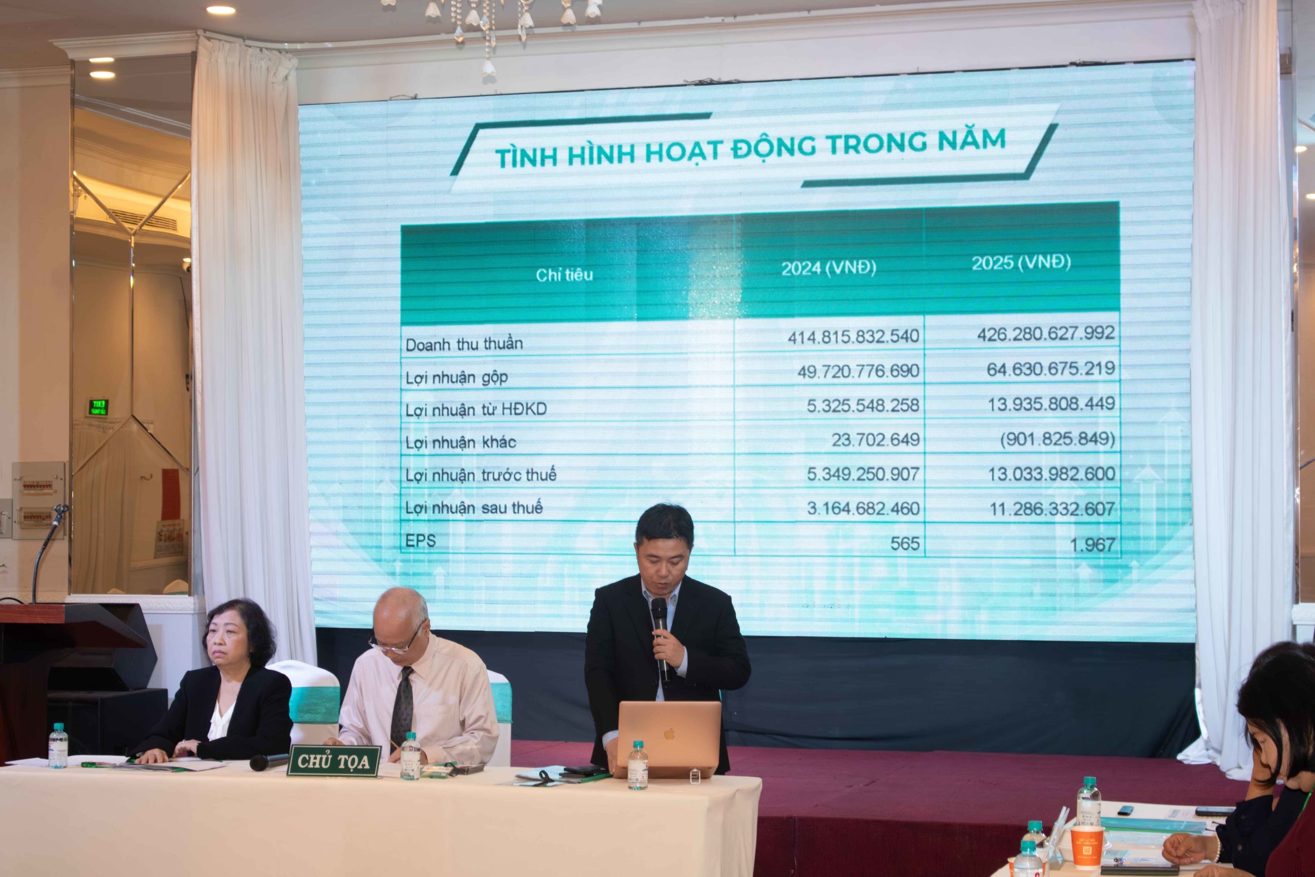 Trên cơ sở đó, Đại hội đã thống nhất thông qua định hướng hoạt động năm 2026 với trọng tâm tăng trưởng có chọn lọc, gắn doanh thu với hiệu quả thực chất và siết chặt quản trị vận hành. Công ty đặt kế hoạch lợi nhuận trước thuế 10 tỷ đồng và lợi nhuận sau thuế 8 tỷ đồng, duy trì mức cổ tức dự kiến 10%.